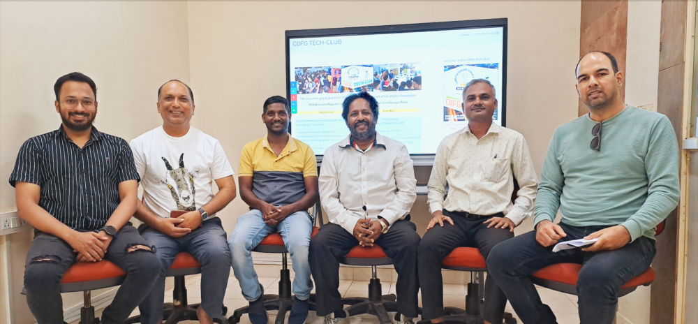 The initiative to Launch the CDFG Tech Club was held on 25th November 2023 at Third Floor Alfran Plaza and the methodology of forming the Tech Clubs in every nook and corner of Goa was discussed by the attendees. It was decided that IT enthusiasts who had the inclination and time to contribute to the society assist in initiating or conducting small or big activities related to IT in their towns, cities or villages and such activities shall have the support of CDFG. This process was aimed to reach out to impart, educate, motivate and enlighten people about computing and technologies that can make a difference to their lives. It was also made known to the participants who joined the Tech Club, that CDFG has lot of plans to support such initiatives and also bring benefits to the ones who joined the club and promoted it’s objectives. The contribution to the initiative was supported with brilliant ideas and thoughts with those present at the meet. Starting from Left the participants included, Mr. Stencer Viegas, Mr. Sanjay Chopra, Mr. Narayan Mavilla, Mr. Simon Fernandes, Mr. Venktesh Babladi and Mr. Pankaj Gaonkar